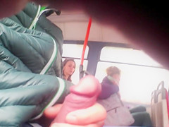 Stud Jerking Off 10-Pounder in a Public Bus and Angel Watches Him