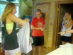 Coeds in the same couple of shorts piddle in 'em