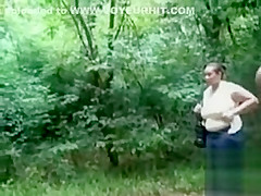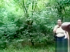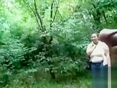 Obese woman is mesmerized by his big dick in public