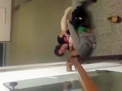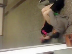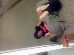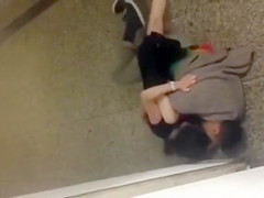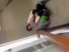 This Guy creeps down the stairs to the sounds of sex and when this guy comes around the corner there’s a pair on the floor going at it. Public banging is clearly their thing.