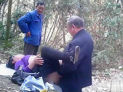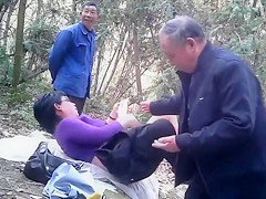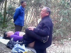 Old pair got down to kinky business of copulating their brains out in the centre of the woods whilst an aged boy-friend watched 'em doing it.