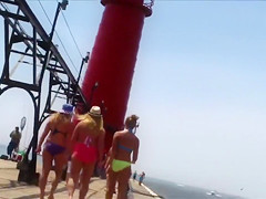 I followed those 3 British coeds for as lengthy as I could, mostly getting footage of their asses in bikini bottoms, but sometimes capturing boobies likewise.