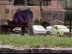 Breana in bitch gives face hole gagging bj in the outdoors