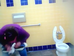 Older Mexican woman goes pee in a public baths
