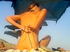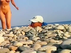 Everybody can't live without the nudist beaches! This boy saw that the woman across him is absolutely bare, so this chab decided to make a movie scene whilst her crotch can be easily seen.