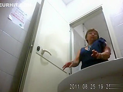 Description: Mastering the art of pissing during the time that standing up is hard for many babes but this short-haired aged lady caught on camera has become a veteran in this discipline.