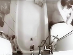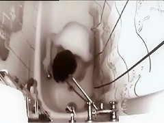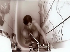 After giving her body a quick washing the dilettante lies on her back in the tub, widens her legs, and lets the water hit her curly snatch and bring her to a glamorous big O.
