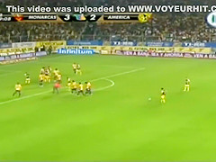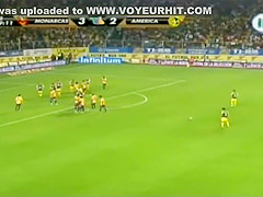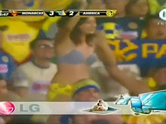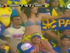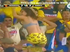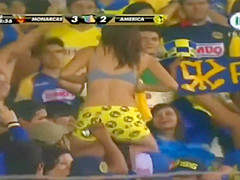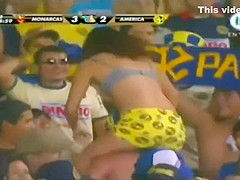 Curvy fangirl shows off her titties on the football match