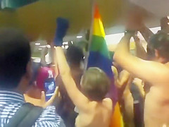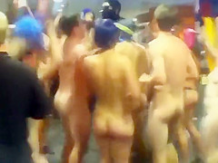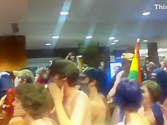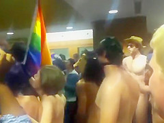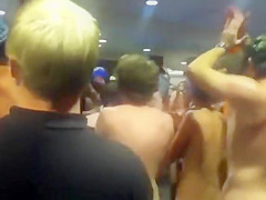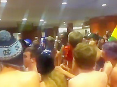 College nudists come throughout the main hall