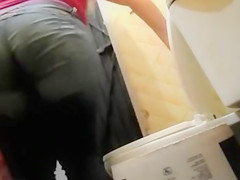 That Babe takes off her apron and pulls down her skintight jeans to take a void urine in the throne room and a hidden camera films her bulky wazoo and thick haunches as the big beautiful woman relieves her bladder.