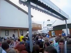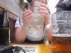 Description: That Babe enjoys the fair and uses the chance to take a piddle into a mug, below the table. That Babe takes a sip afterward, just to have a tiny smack of her own beer.