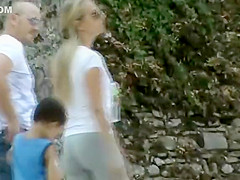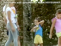 Merely a assured woman wears such constricted leggings to the park and the voyeur sitting on a bench got precious cameltoe footage and some hot looks at her astounding arse.