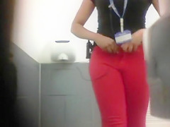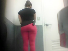 This Babe was totally unaware that there was a hidden camera in the college biffy, which allows us to watch her great bum and the wet little snatch hiding betwixt her legs.