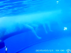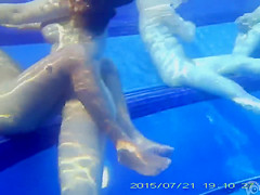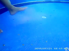 Thinking that the cover of water will allow 'em to do all sorts of naughty things, the concupiscent pair engaged in a bit of underwater rubbing. That was a mistake.