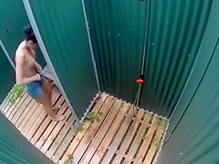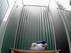 Black haired bombshell takes a cold shower