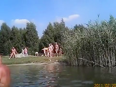 Nudist weekend at the lake with lots of in nature's garb people