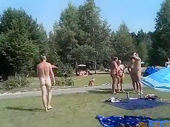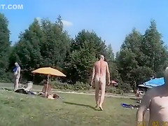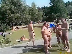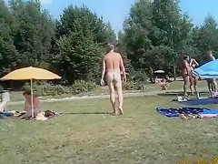 Males and sweethearts alike are in nature's garb at the nudist camp as I roam with my camera. Everybody is comfortable with their bodies and cheerful to be filmed.