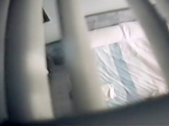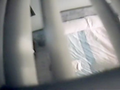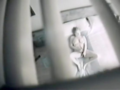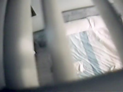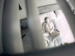 There’s an AC vent in her ceiling and a hidden camera is placed perfectly in there to stare down at her ottoman and film as the breasty lady masturbates with a toy and cums.