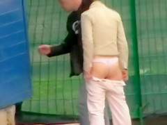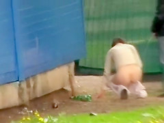 That Guy needed to piddle, and his girlfriend saw that as a great opportunity to take a trickle herself. They discovered a convenient place and one as well as the other of 'em voided urine in their own way.