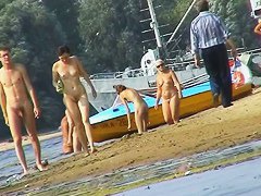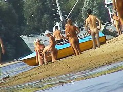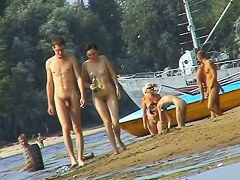 A barefaced voyeur tapes stripped people on the beach with his excited spy camera