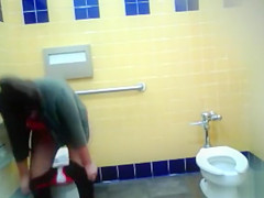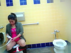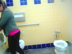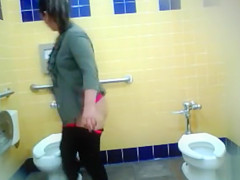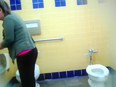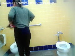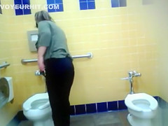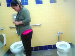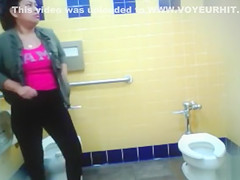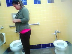 Curvy mama piddles in the public lavatory