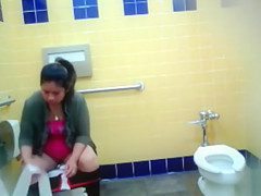 After putting the protective paper down on the crapper bowl the woman drops her panties and sits to take a piddle. There’s a priceless view of her wiping her cum-hole clean after she’s done.