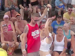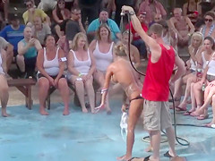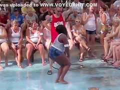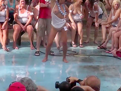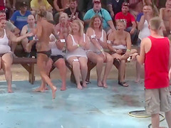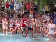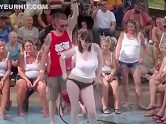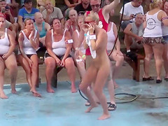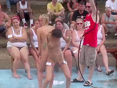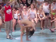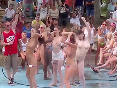 There’s quite a crowd gathered to see those fit, hawt beauties undress from their juicy shirts as a pantyhose sprays a steady stream of phat water on their avid constricted bodies.