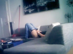 She’s shoved her jeans down to her knees and keeps her pants on during the time that this babe pursues the enjoyment of agonorgasmos. My secret camera shows thrusting thighs and voluptuous convulsions.