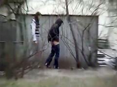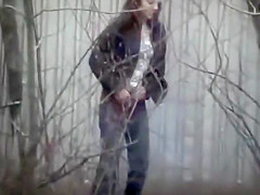 Presumably there was no public biffy nearby since those 2 cute honeys walk a little into the woods, pull down their panties, and squat to make water on the ground.