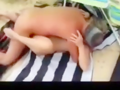 Hotty with plug in the a-hole positions for a lad at a public beach