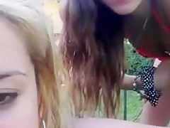 2 sexy girlfriends have sex outdoors