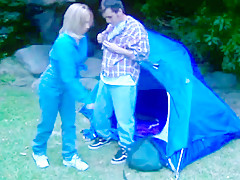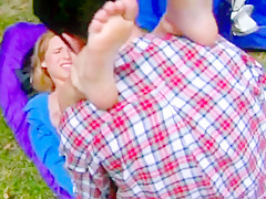 Gorgeous college cutie camps out !