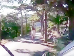 Breana in bitch gives face hole gagging bj in the outdoors