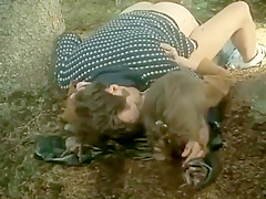 2 sexy girlfriends have sex outdoors
