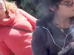2 sexy girlfriends have sex outdoors