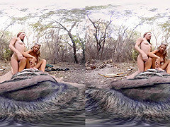 2 sexy girlfriends have sex outdoors
