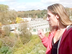 Breana in bitch gives face hole gagging bj in the outdoors