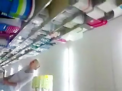 Sexy blond shopper shows a precious butt underneath her white petticoat i