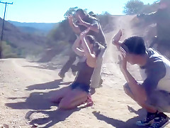 Breana in bitch gives face hole gagging bj in the outdoors