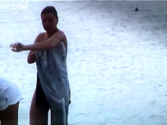 Hotty with plug in the a-hole positions for a lad at a public beach