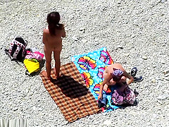 Hotty with plug in the a-hole positions for a lad at a public beach