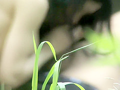 Hotty with plug in the a-hole positions for a lad at a public beach
