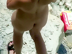 Hotty with plug in the a-hole positions for a lad at a public beach