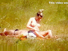 Hotty with plug in the a-hole positions for a lad at a public beach