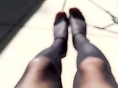 Outdoor in dark hose and high heels