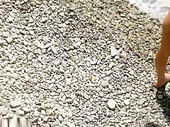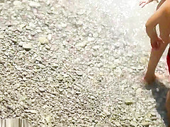 Hotty with plug in the a-hole positions for a lad at a public beach