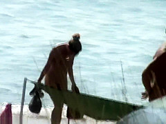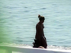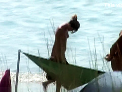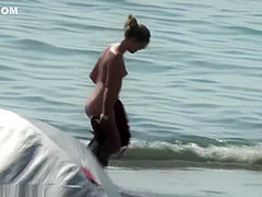 Hotty with plug in the a-hole positions for a lad at a public beach