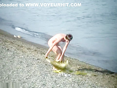 Hotty with plug in the a-hole positions for a lad at a public beach