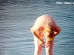 Hotty with plug in the a-hole positions for a lad at a public beach