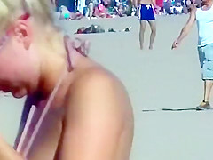 Hotty with plug in the a-hole positions for a lad at a public beach